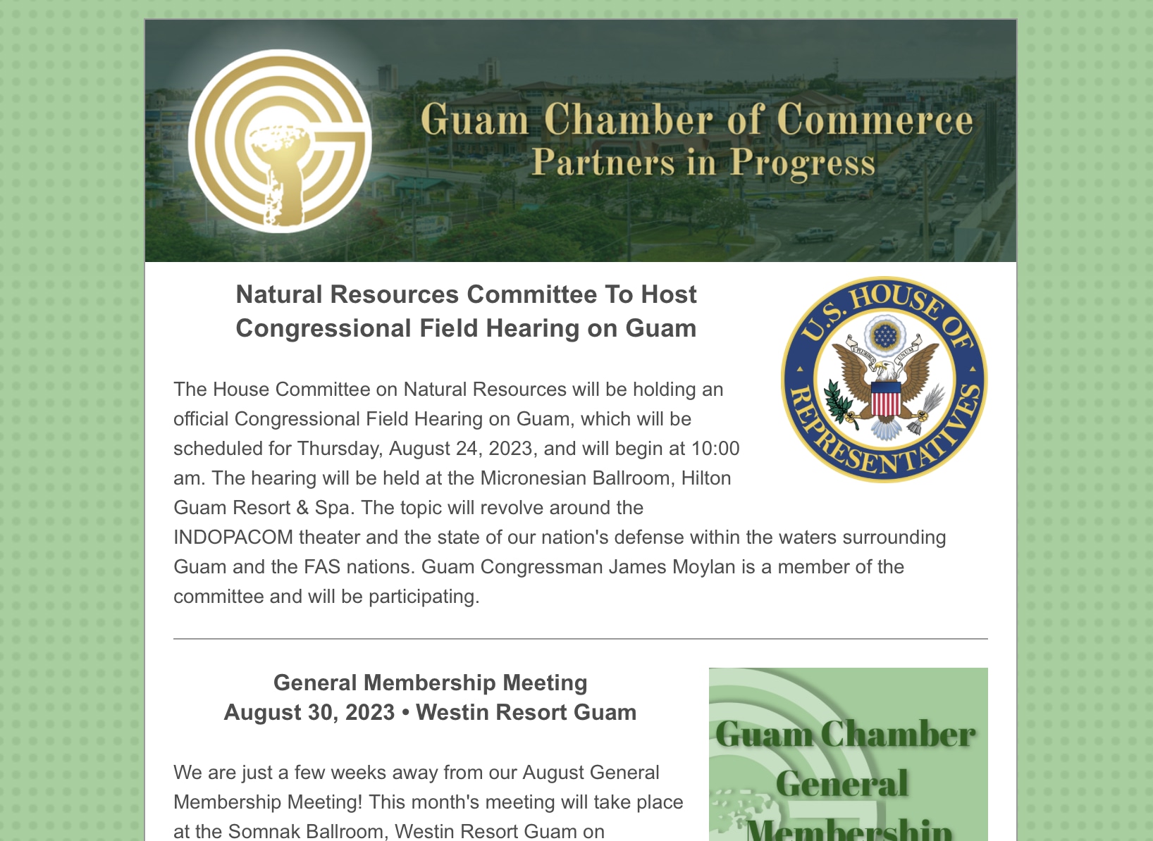 Bite sized updates just for you! - Have a great weekend Guam! Back to Chamber News Bite sized updates just for you! - Have a great weekend Guam! By Guam Chamber of Commerce 8/17/2023 Saturday, August 18, 2023 View the newsletter! Images × Share × Email Facebook LinkedIn X Pinterest Powered By GrowthZone