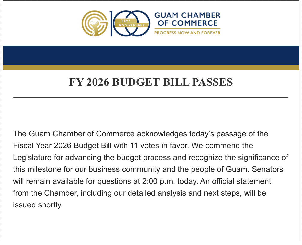 FY 2026 Budget Bill Passes Back to Chamber News FY 2026 Budget Bill Passes By Catherine Castro 9/3/2025 August 22, 2025 View The Chamber Statement Here! Images × Share × Email Facebook LinkedIn X Pinterest Powered By GrowthZone