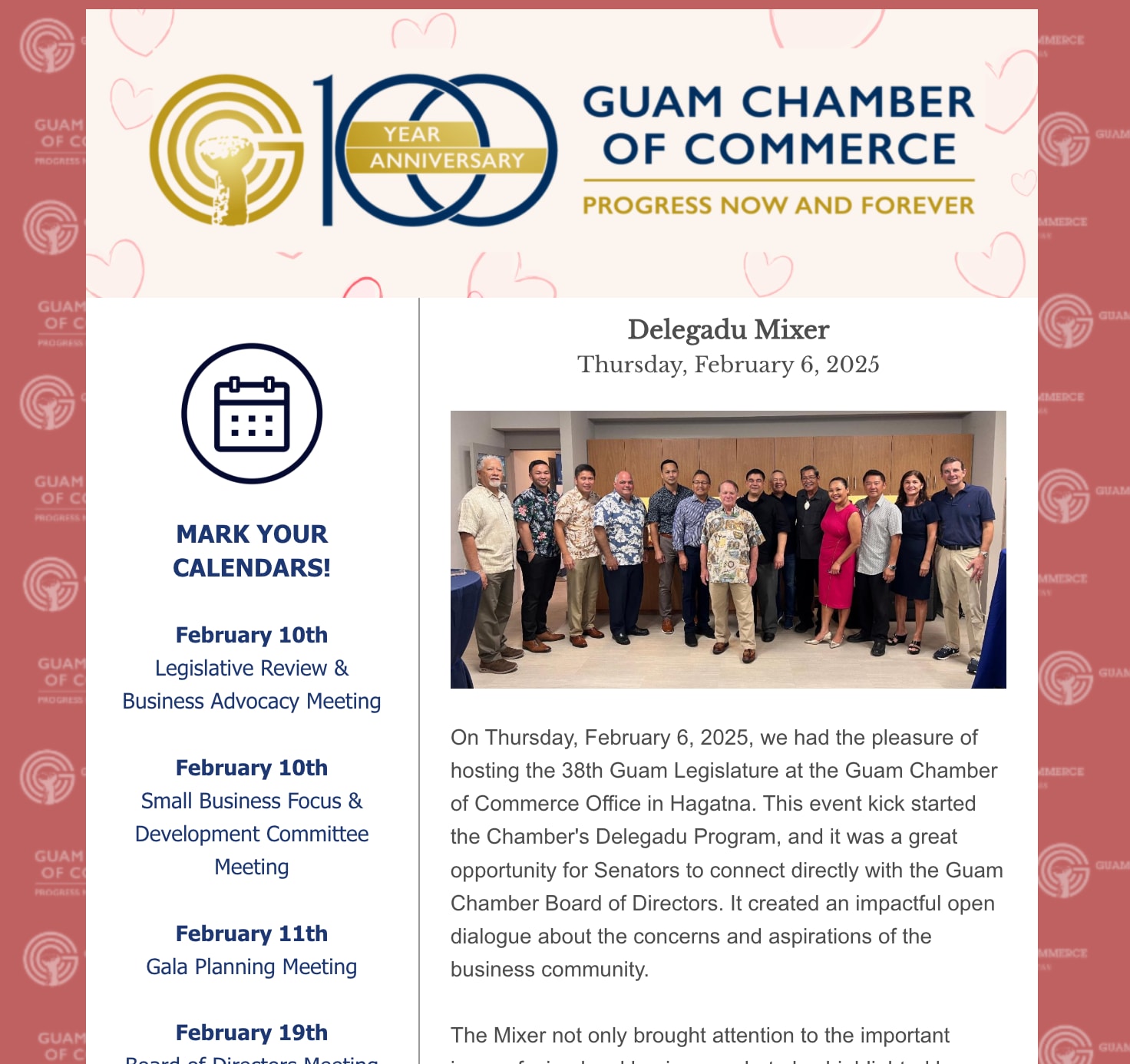 Sweet updates to kick start your week ahead!🏈 - Look out weekend Back to Chamber News Sweet updates to kick start your week ahead!🏈 - Look out weekend By Guam Chamber of Commerce 2/7/2025 Saturday, February 8, 2025 Click here to view the newsletter! Images × Share × Email Facebook LinkedIn X Pinterest Powered By GrowthZone