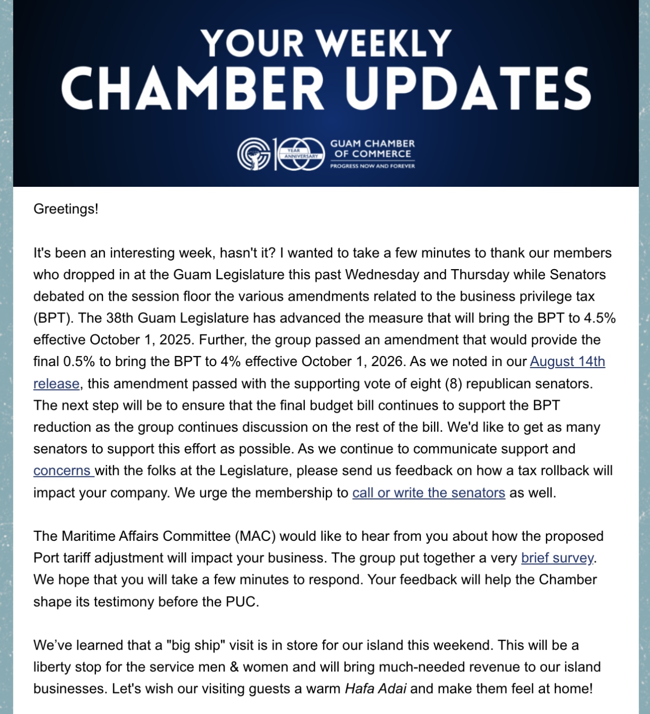 The Week's Recap and Whats Ahead!👀 Back to Chamber News The Week's Recap and Whats Ahead!👀 By Catherine Castro 9/21/2025 Saturday, August 16, 2025 View The Newsletter Here! Images × Share × Email Facebook LinkedIn X Pinterest Powered By GrowthZone