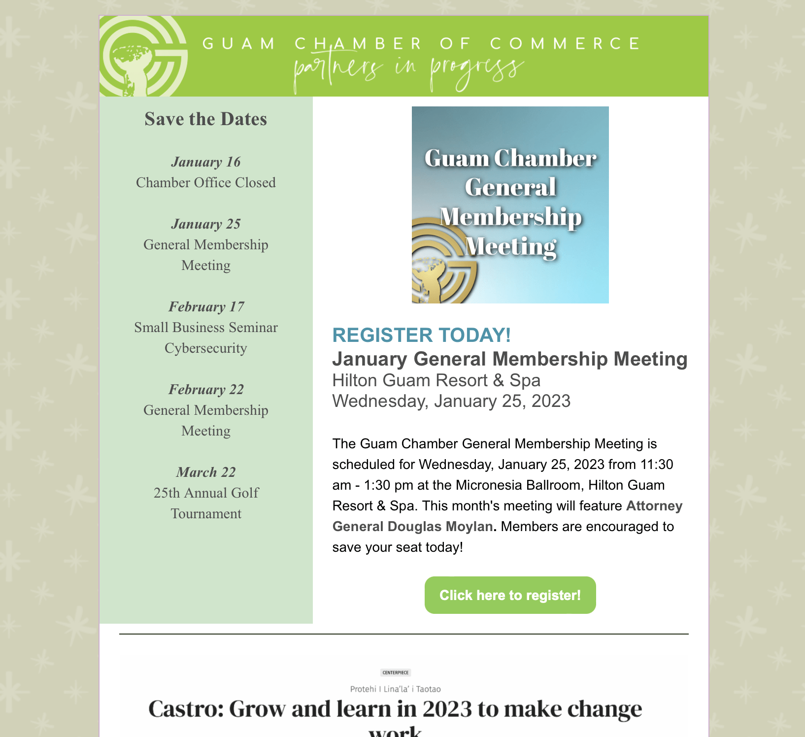 Updates from Your Guam Chamber - Have a safe weekend! 🌧 Back to Chamber News Updates from Your Guam Chamber - Have a safe weekend! 🌧 By Guam Chamber of Commerce 1/13/2023 Juanary 14, 2023 View the newsletter! Images × Share × Email Facebook LinkedIn X Pinterest Powered By GrowthZone