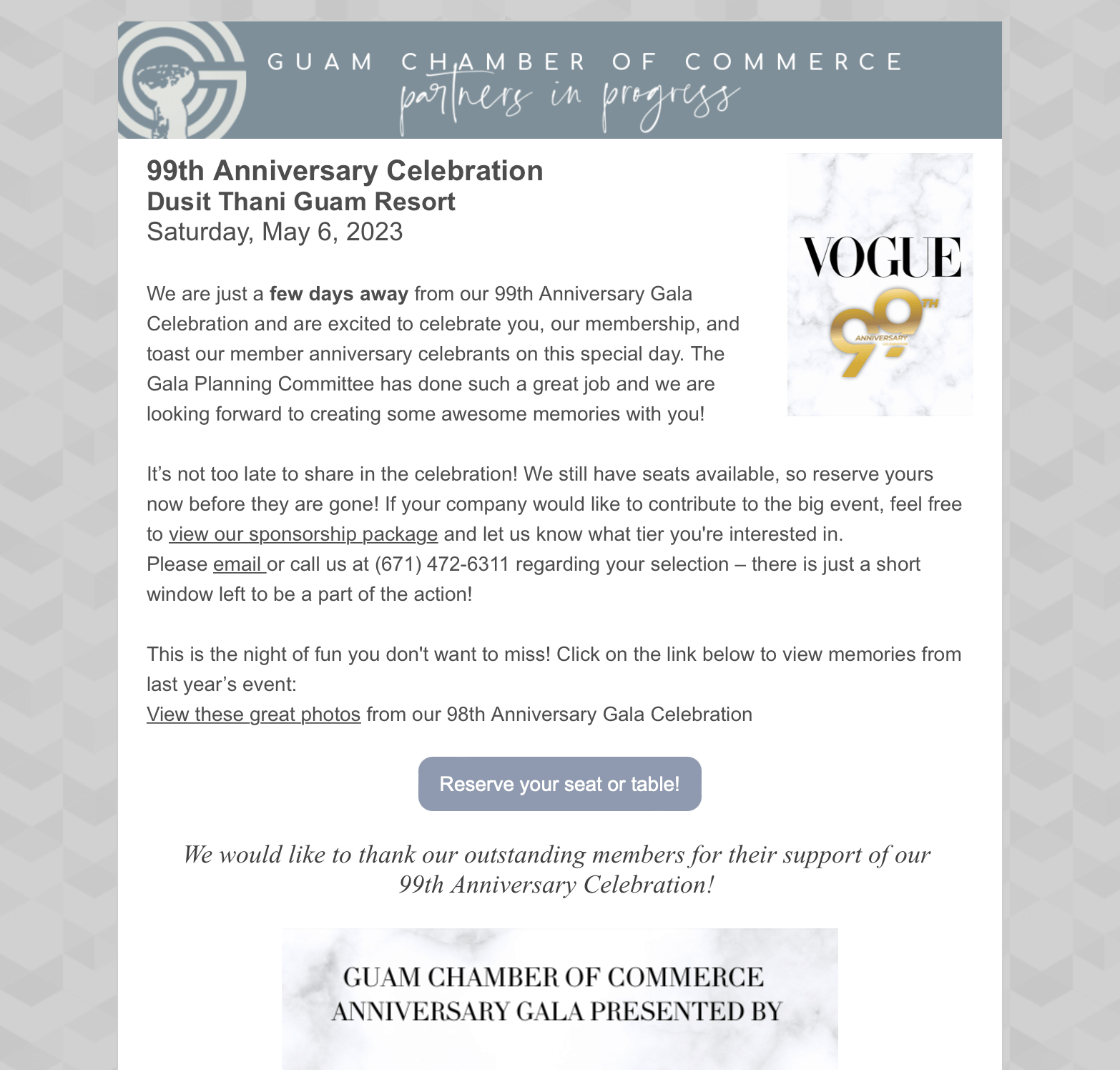 Weekend Updates! - Adios April 👋🏽 Back to Chamber News Weekend Updates! - Adios April 👋🏽 By Guam Chamber of Commerce 4/28/2023 Saturday, April 29, 2023 Click here to view newsletter! Images × Share × Email Facebook LinkedIn X Pinterest Powered By GrowthZone