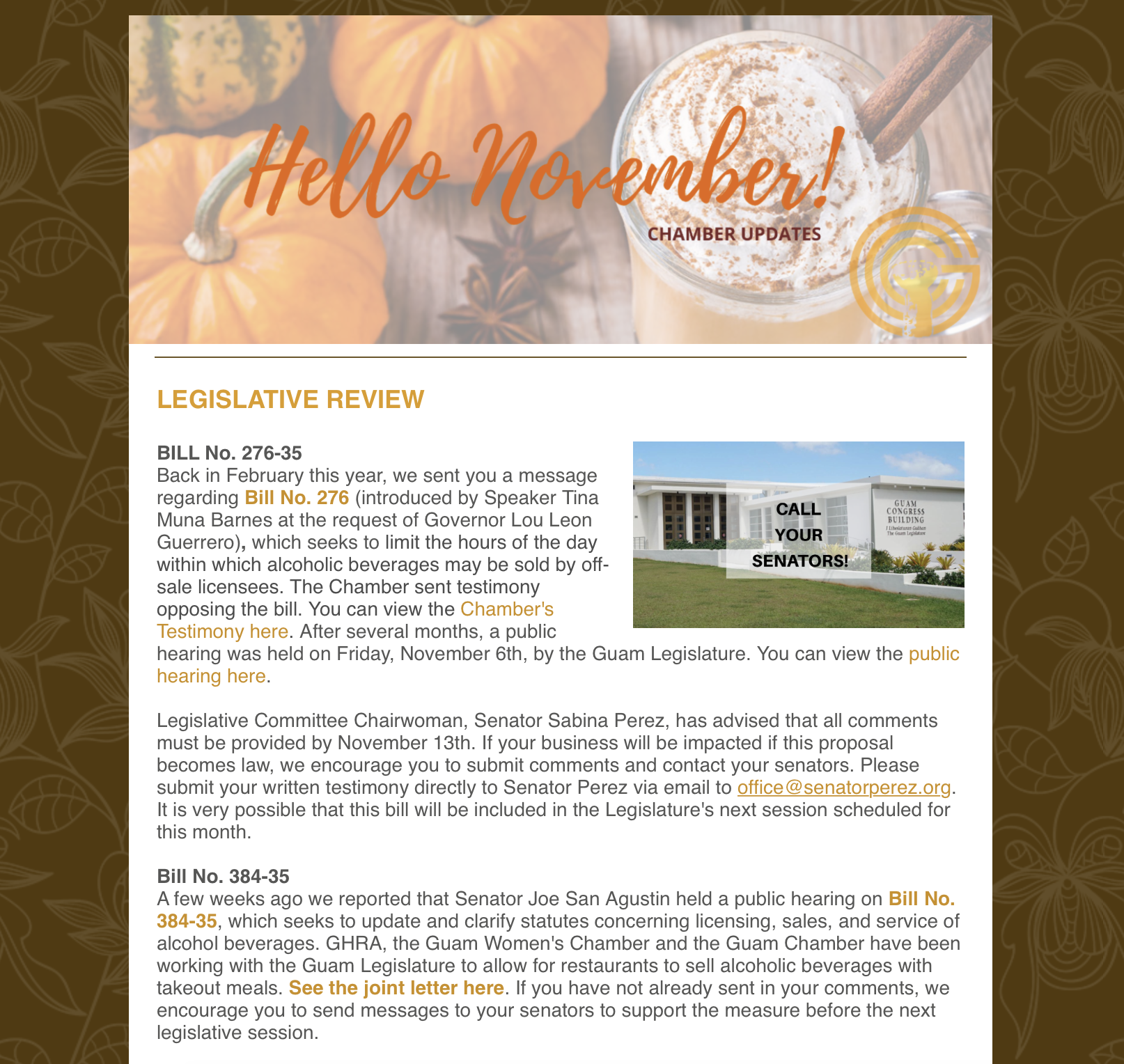 What's going on?👀 Back to Chamber News What's going on?👀 By Guam Chamber of Commerce 12/1/2020 November 7, 2020 View the November 7th updates here! Images × Share × Email Facebook LinkedIn Twitter Pinterest Powered By GrowthZone